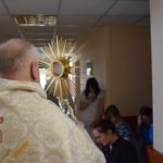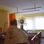 Po Mszy Św. miało miejsce wystawienie Najświętszego Sakramentu i krótka adoracja z litanią w intencji chorych. Na koniec adoracji Celebrans udzielił indywidualnego błogosławieństwa Najświętszym Sakramentem w salach chorym, którzy nie mogli wybrać się do kaplicy oraz błogosławieństwa ogólnego dla wszystkich zgromadzonych. Kilku pacjentów uczestniczyło w liturgii również na łóżkach.