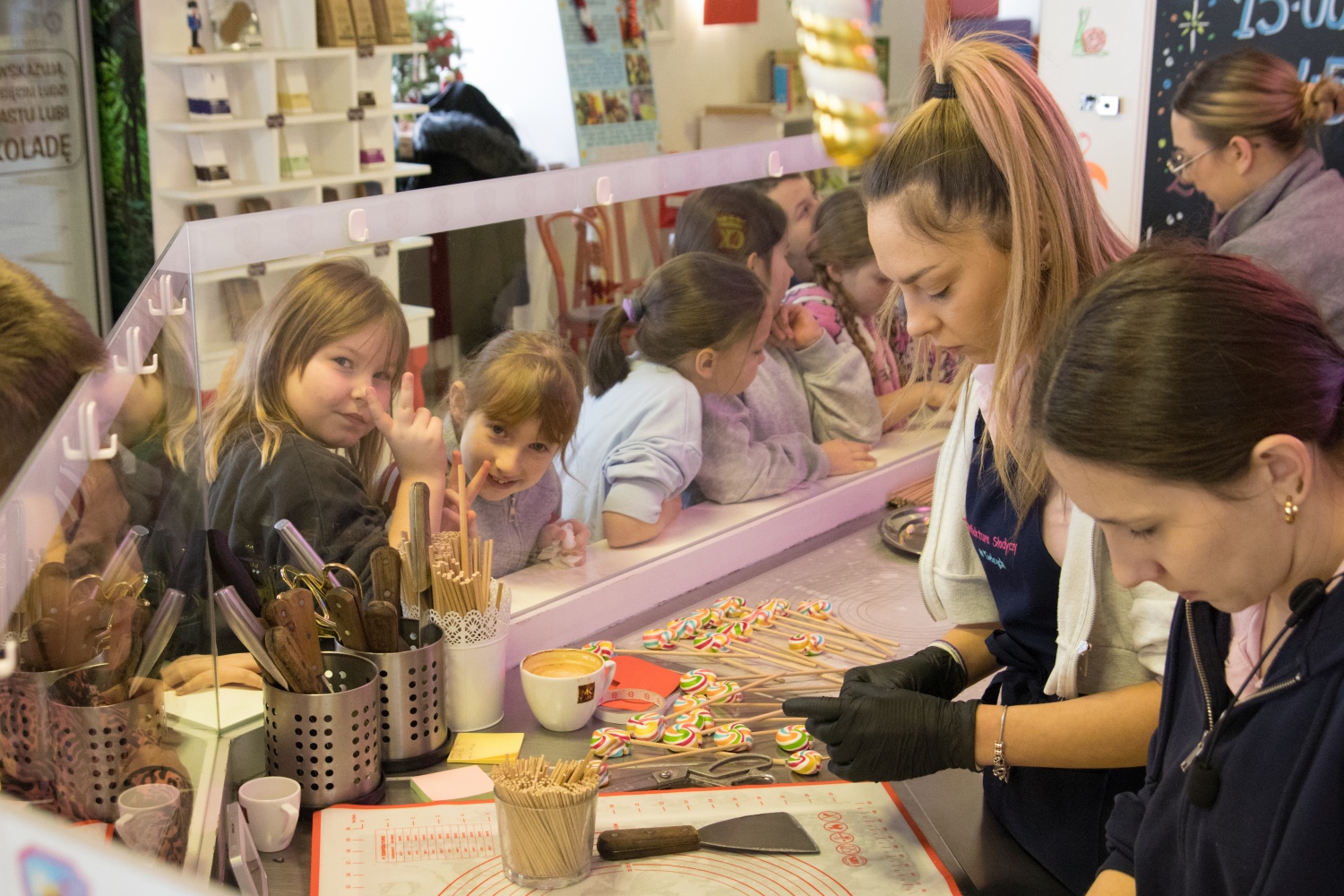 Oczywiście na feriach nie mogło zabraknąć wyjścia na trampoliny. Wychowankowie mieli okazję poćwiczyć na trampolinach „Happy Jumper” i „Fly Park”. Zabawa była wyśmienita. Ciekawe były także nasze spacery po Kielcach. Podczas jednego z nich odwiedziliśmy pizzerię „Głodna Małpa”. Dzieci poznały tam historię Włoch, potraw związanych z tym krajem, ze szczególnym uwzględnieniem pizzy neopolitańskiej. Miały okazję obserwować cały proces powstawania pizzy, prawie od podstaw. Podczas kolejnego ze spacerów wychowankowie odwiedzili „Magię Karmelu” i stworzyły tam pyszne lizaki. Półkolonie zakończyły się świetną zabawą na basenie „Koral” w Morawicy.