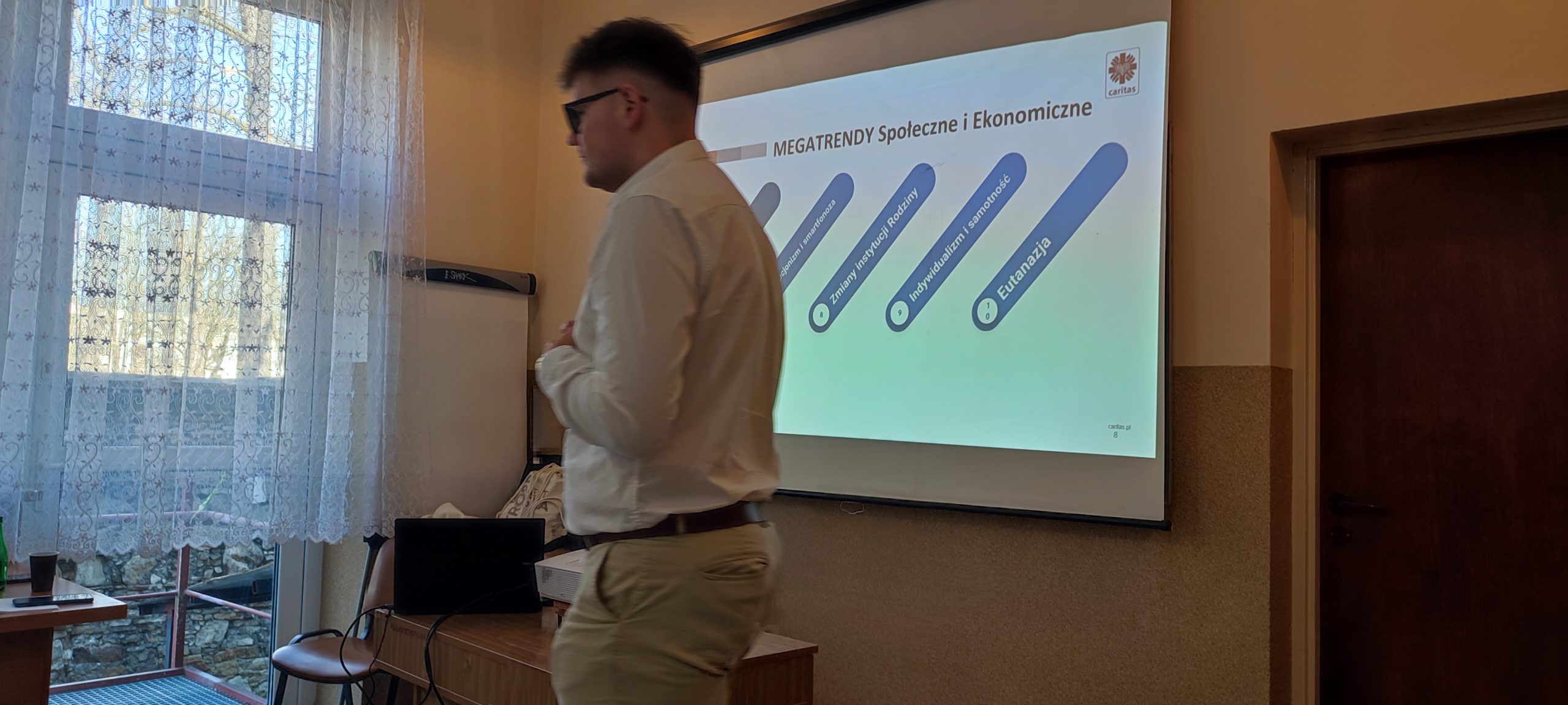 Warsztaty przeprowadził p. Marcina Kawko – koordynator Centrum Analiz Problemów Społecznych Caritas Polska i doktorant Szkoły Głównej Handlowej w Warszawie. Uczestnicy mieli możliwość omówienia bardzo praktycznych wyzwań współczesnego świata i sposobów odpowiedzi na nie w codziennej pracy Caritas. Dzięki warsztatom mogliśmy zgłębić misję oraz wspólnotową tożsamość Caritas, bazując głownie na naszych praktycznych, codziennych doświadczeniach z działalności naszej organizacji.