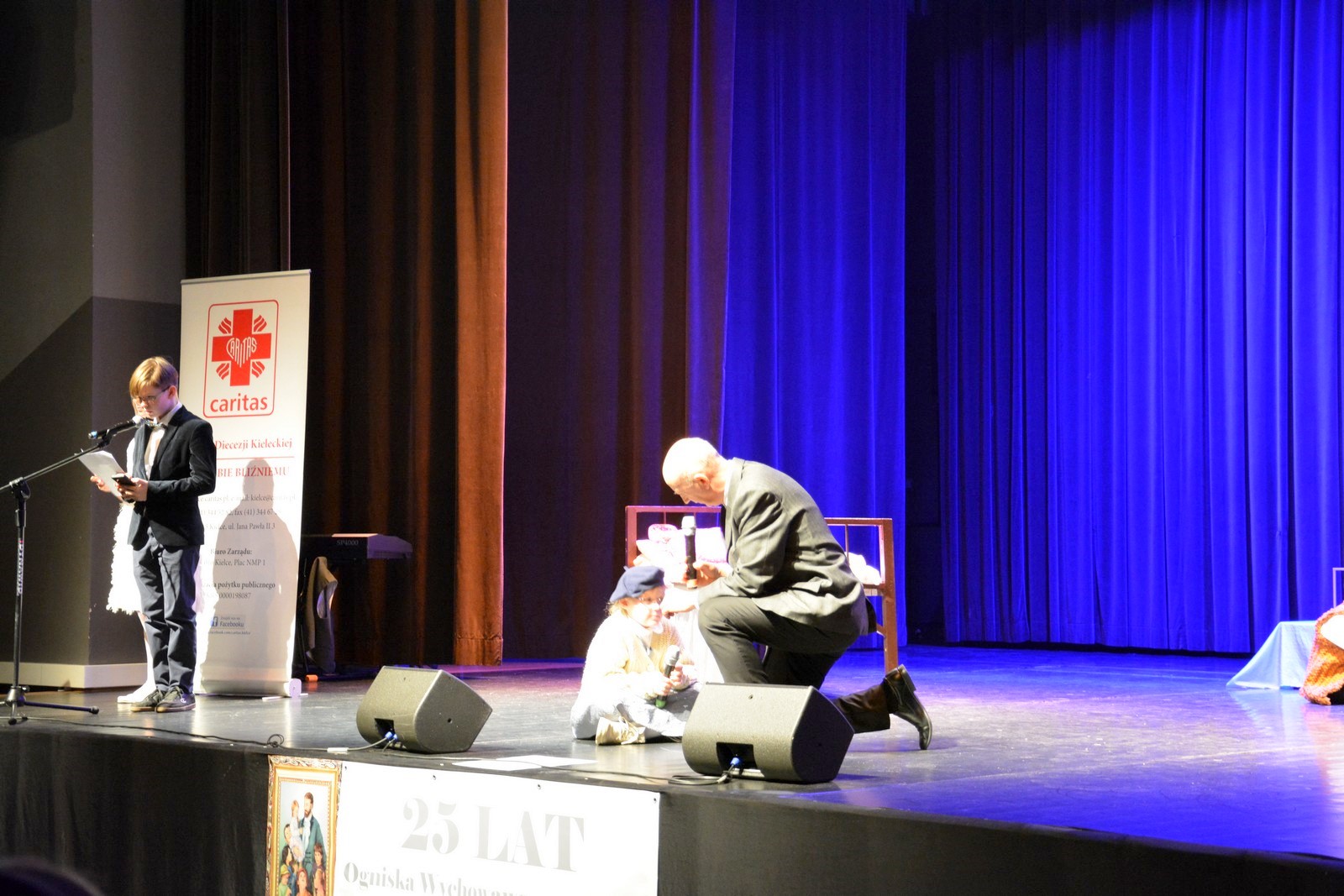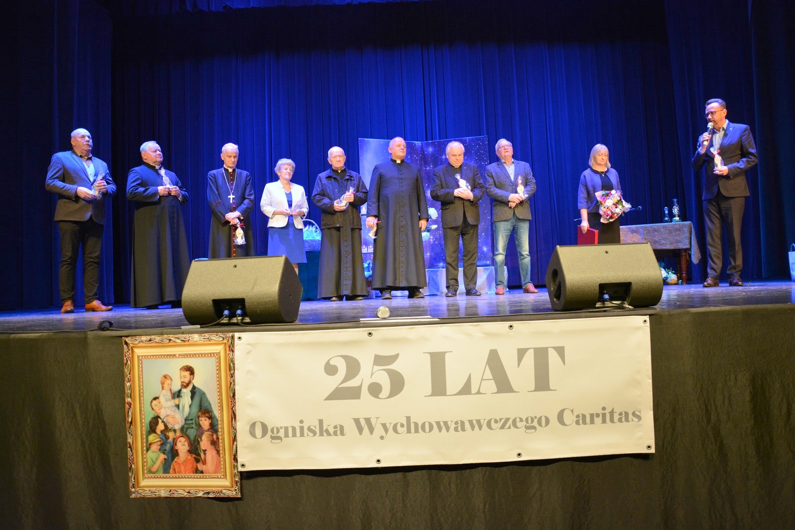 “Od dzieci trzeba zacząć odrodzenie ludzkości” mawiał bł. Edmund Bojanowski – założyciel Zgromadzenia Sióstr Służebniczek Najświętszej Maryi Panny i patron Ogniska Wychowawczego w Jędrzejowie. Ta właśnie placówka wsparcia dla dzieci, prowadzona przez Caritas Diecezji Kieleckiej, w dniu 6 listopada świętowała 25 – lecie swej działalności. Uroczystości rozpoczęły się od Mszy Świętej sprawowanej w kościele Trójcy Świętej w Jędrzejowie. Liturgii przewodniczył ks. bp Marian Florczyk, a koncelebrowali księża dyrektorzy Caritas Kieleckiej kapłani z dekanatu jędrzejowskiego i ojcowie cystersi z opactwa w Jędrzejowie. W gronie wychowanków, pracowników i wolontariuszy Ogniska, a także rodziców, przyjaciół i władz samorządowych dziękowano Bogu za miniony czas i wypraszano łaski potrzebne na kolejne lata rozwoju placówki. Okolicznościowa gala odbyła się w pięknych wnętrzach Centrum Kultury w Jędrzejowie. Wydarzenie ubogaciły wzruszające występy artystyczne wychowanków, były śpiewy, tańce oraz misterium o bł. E. Bojanowskim. S. Andrea Barbara Kubacka, kierownik Ogniska Wychowawczego, dzieliła się radością z osiągniętych dokonań. Można się było przekonać jak wiele dobra dokonało się przez te lata: wsparcie dzieci w ich integralnym rozwoju, pomoc w nauce, koła zainteresowań, wyjazdy wakacyjne i dożywianie. Pracownicy i wychowankowie dziękowali licznym darczyńcom i instytucjom. Kilkadziesiąt osób otrzymało symbolicznego “Anioła Wdzięczności”, a wśród nich władze samorządowe Miasta i Gminy Jędrzejów oraz Powiatu Jędrzejowskiego. Wyrazy uznania dla działalności Ogniska, a szczególnie dla posługujących tam Sióstr Służebniczek, wyrazili m.in. Burmistrz Jędrzejowa Marcin Piszczek oraz Starosta Jędrzejowski Paweł Faryna i Wicestarosta Maria Barańska.