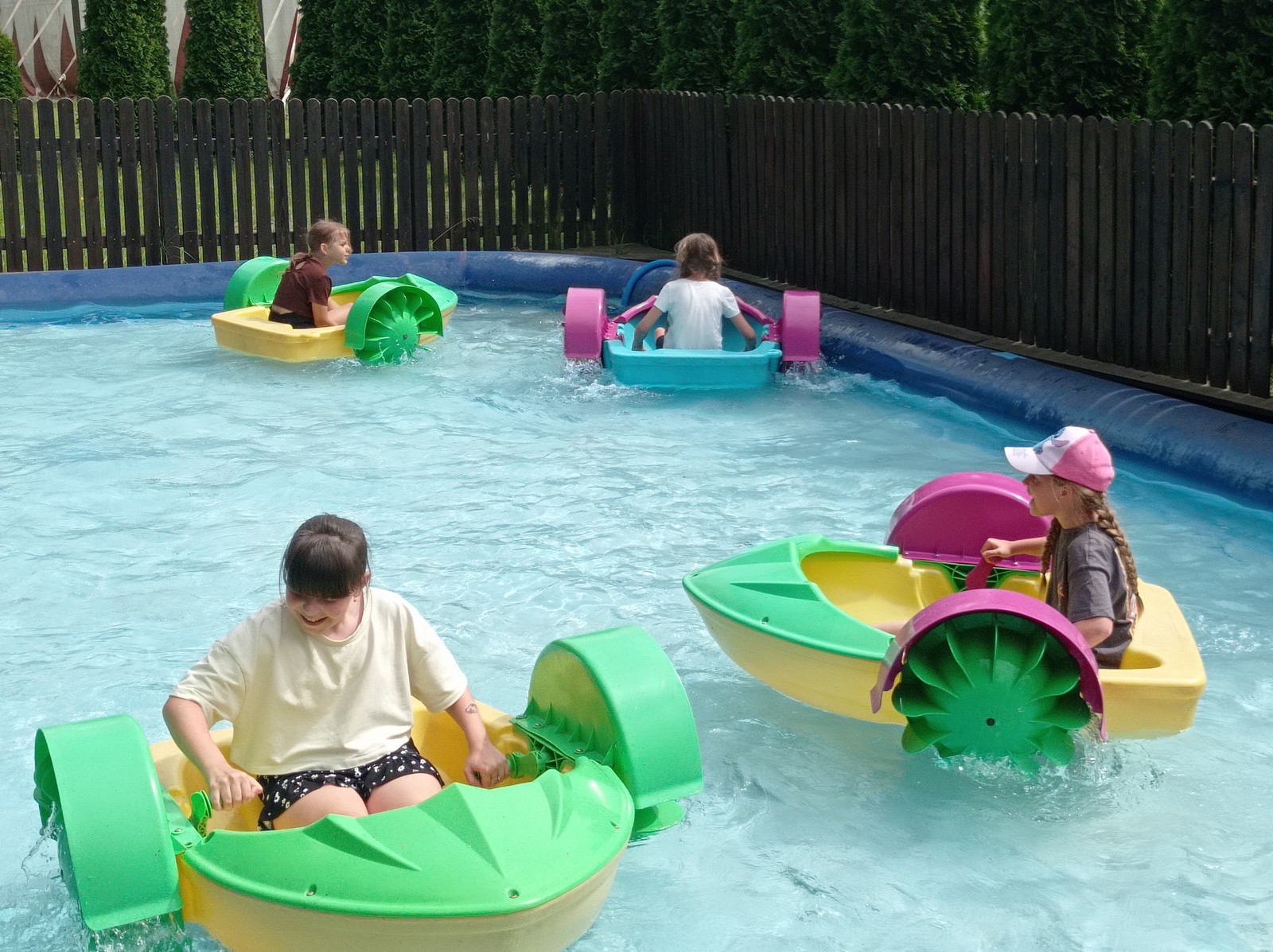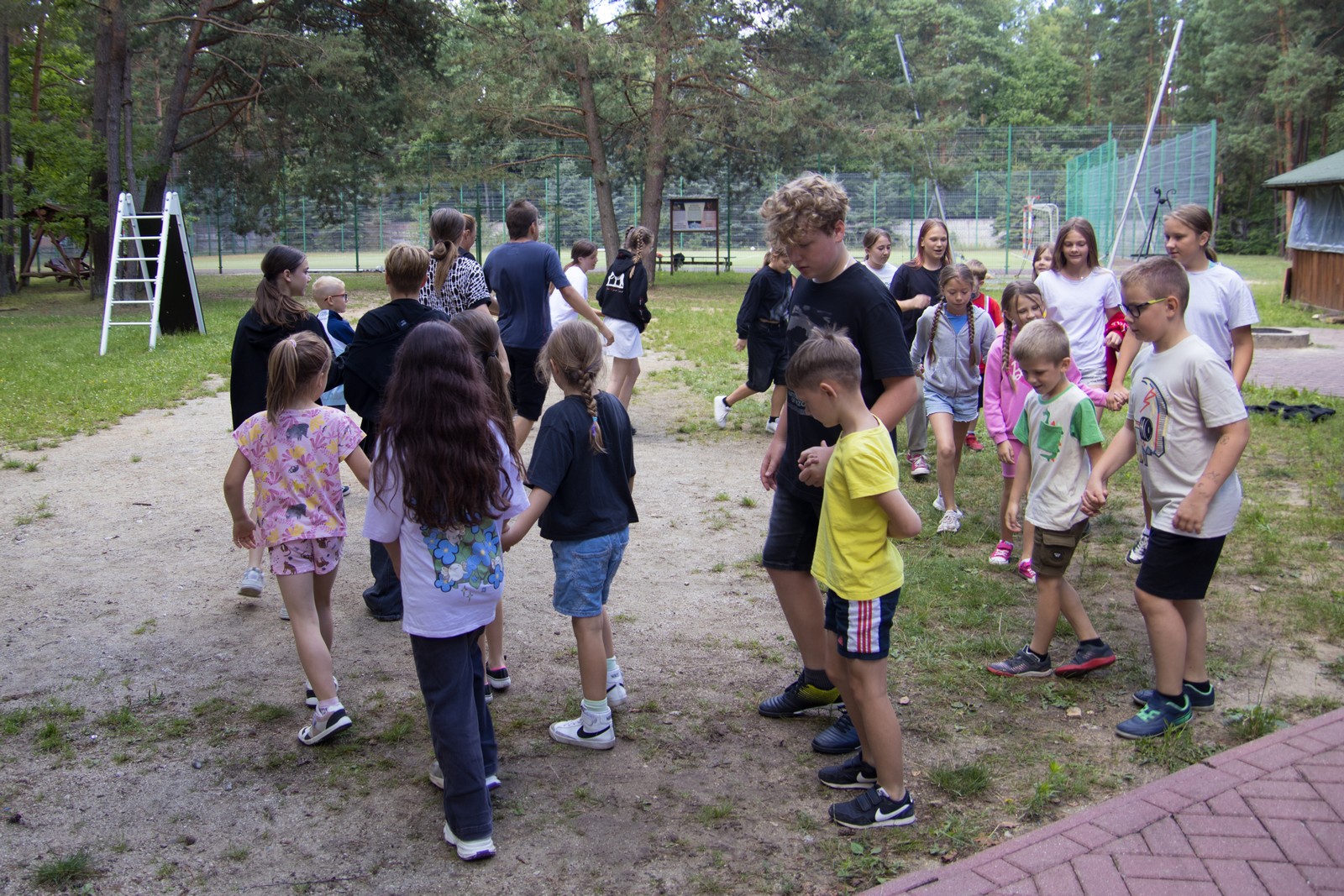 Uroczyste zakończenie półkolonii odbyło się w ośrodku Eko Wypoczynek w Kaczynie. Tam dzieci bawiły się w liczne gry integracyjne, podchody, rozgrywki sportowe na boisku.