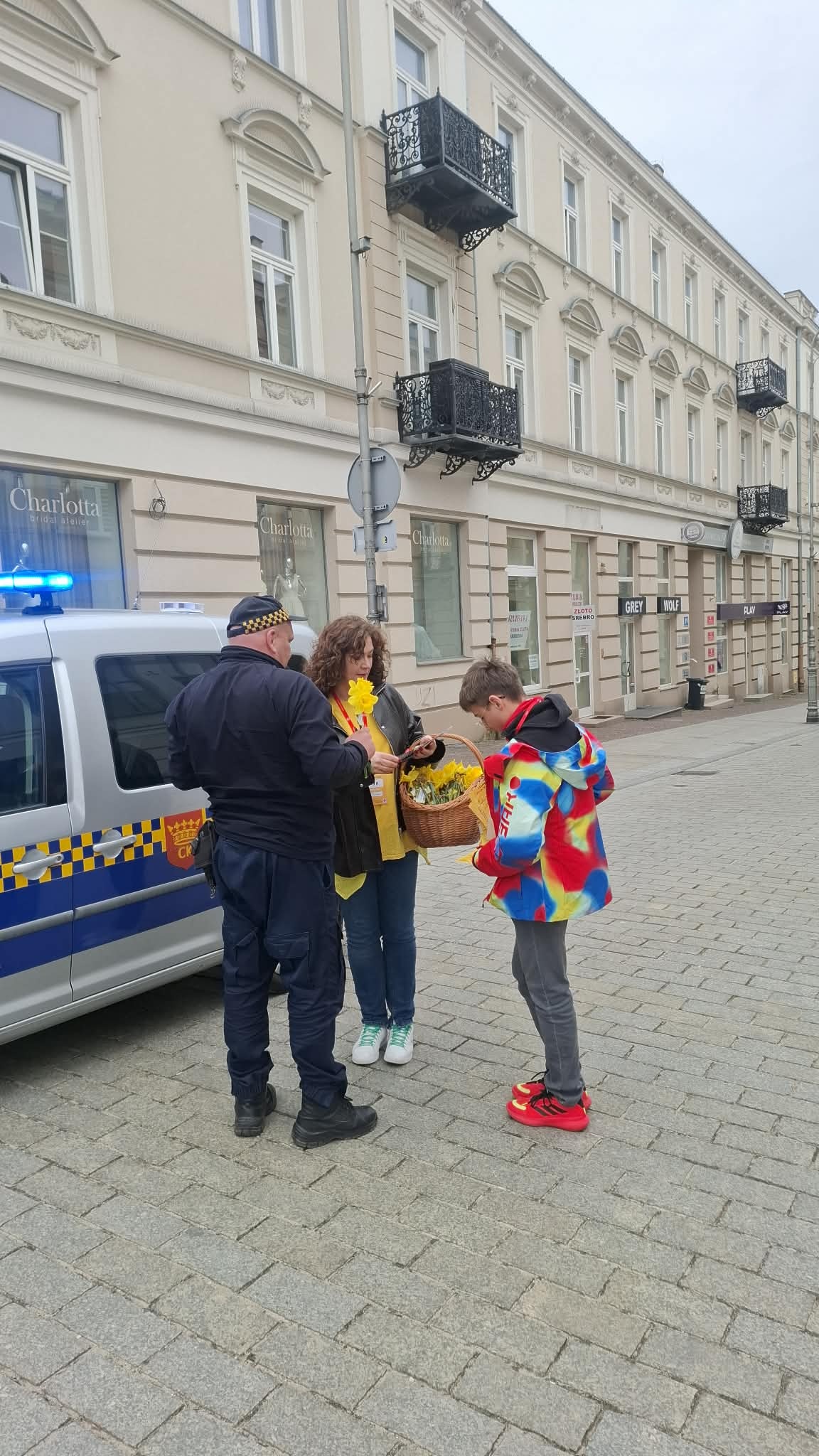 – z Policją i Strażą Miejską, którzy radośnie przyjęli żonkile i miło było popatrzeć na symbole naszej kampanii w rękach funkcjonariuszy i na deskach rozdzielczych radiowozów,