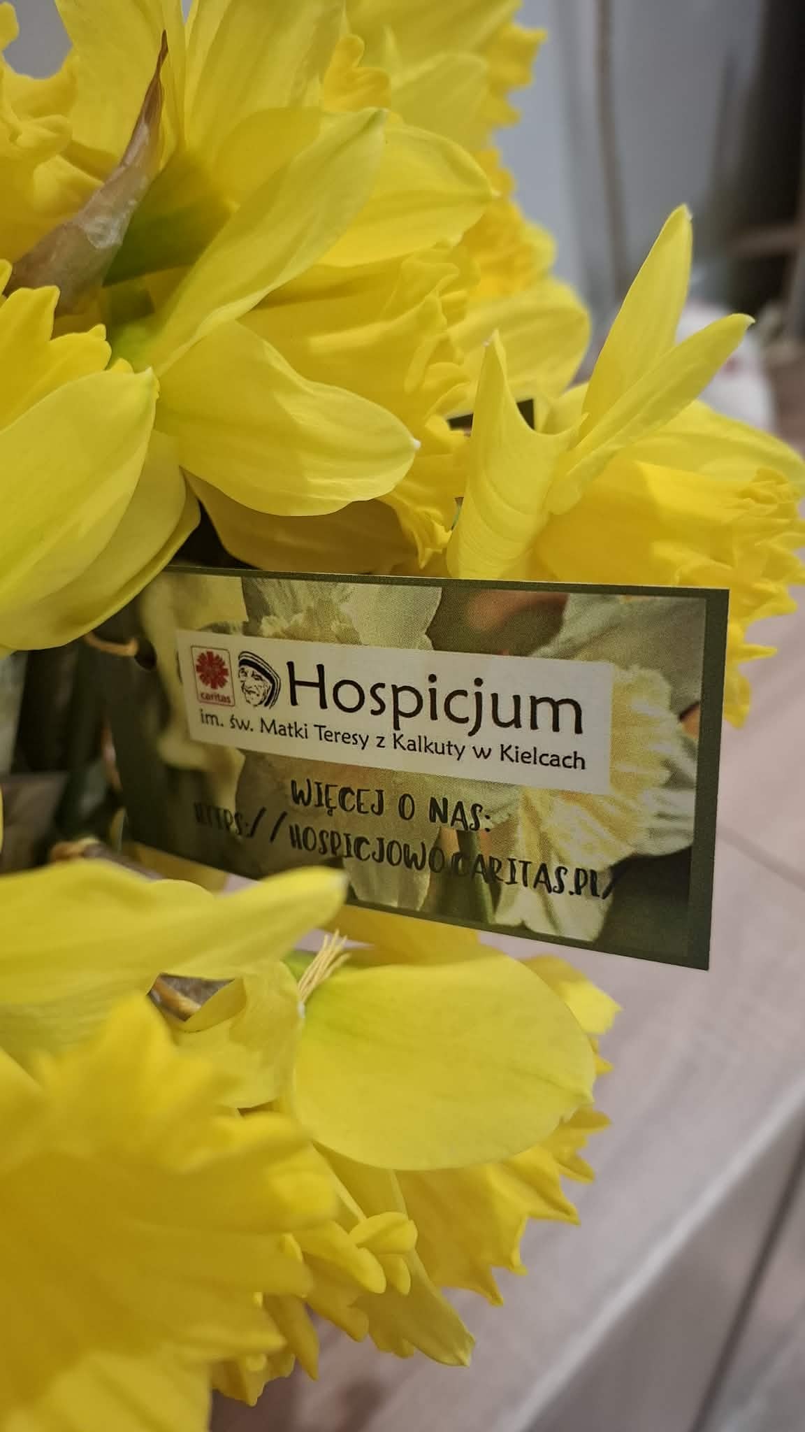 2 kwietnia 2026 oficjalnie zainaugurowaliśmy wiosenne Pola Nadziei – kampanię społeczną na rzecz Hospicjum im. Św. M. Teresy z Kalkuty w Kielcach. Wolontariusze hospicyjni wyszli na ulice centrum Kielc z żonkilami i ulotkami w rękach, by złożyć świąteczne życzenia mieszkańcom i porozmawiać o naszym Hospicjum.