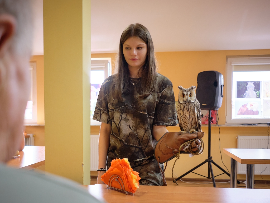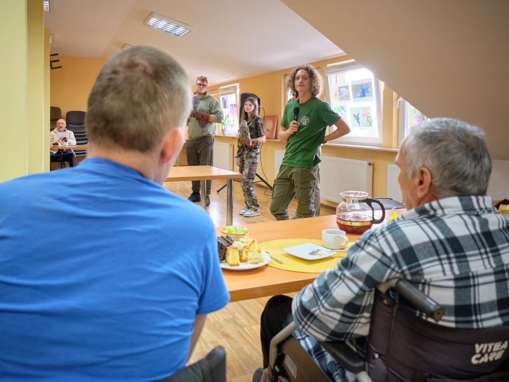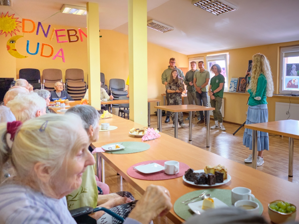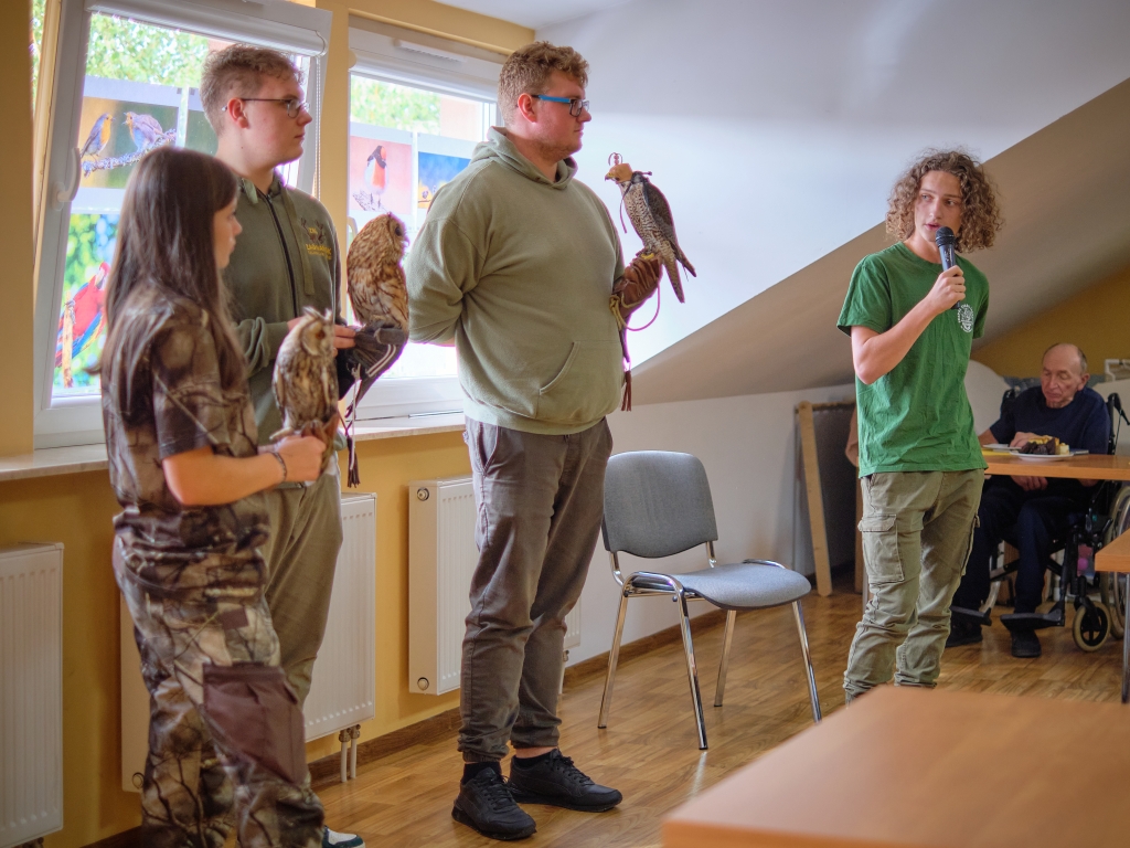 Młodzież opowiadała o ptakach znacznie dłużej niż planowała, tak wiele było pytań i komentarzy. Wśród pacjentów był pan Damian, rolnik i pasjonat przyrody, który poruszył wiele wątków i dzielił się swoimi oświadczeniami. Po prezentacji zorganizowaliśmy quiz o ptakach z nagrodami dla pacjentów i spontaniczny test wiedzy gości – zdali na 6 😊.