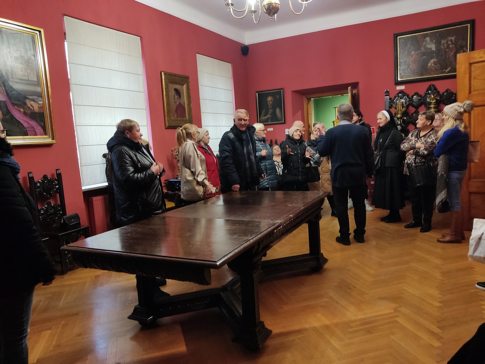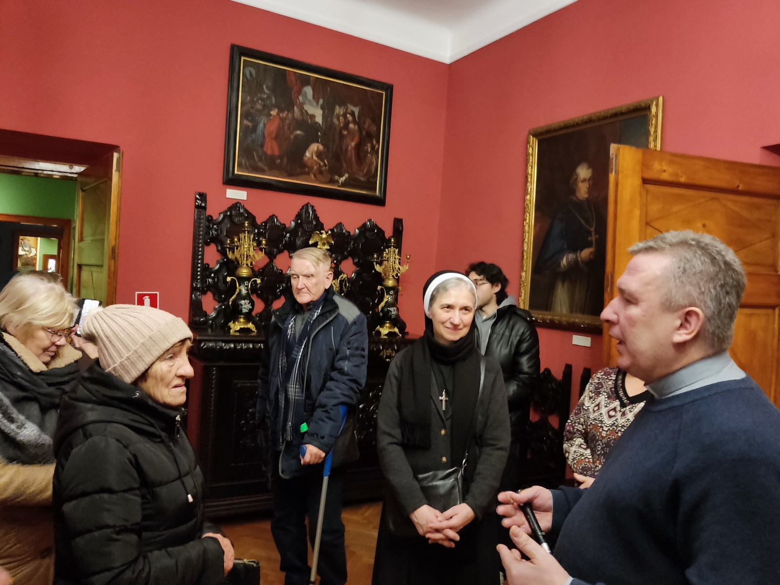 Spotkanie zostało poprzedzone zwiedzaniem  Muzeum Diecezjalnego w Kielcach. Po tym wyjątkowym miejscu oprowadzał dyrektor placówki ks. dr Paweł Tkaczyk, który zaciekawił zwiedzających historiami niezwykłych eksponatów zdeponowanych w muzeum i w kieleckiej Bazylice Katedralnej. Następnie uczestnicy zostali zaproszeni na uroczysty posiłek z tradycyjnymi daniami wigilijnymi, podczas którego każdy senior otrzymał upominki świąteczne.