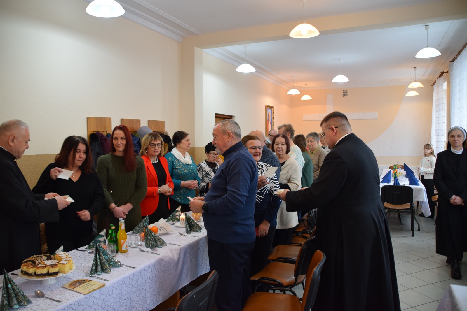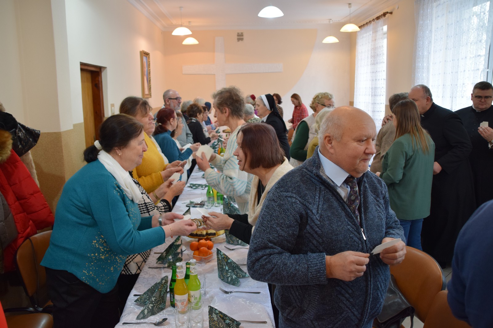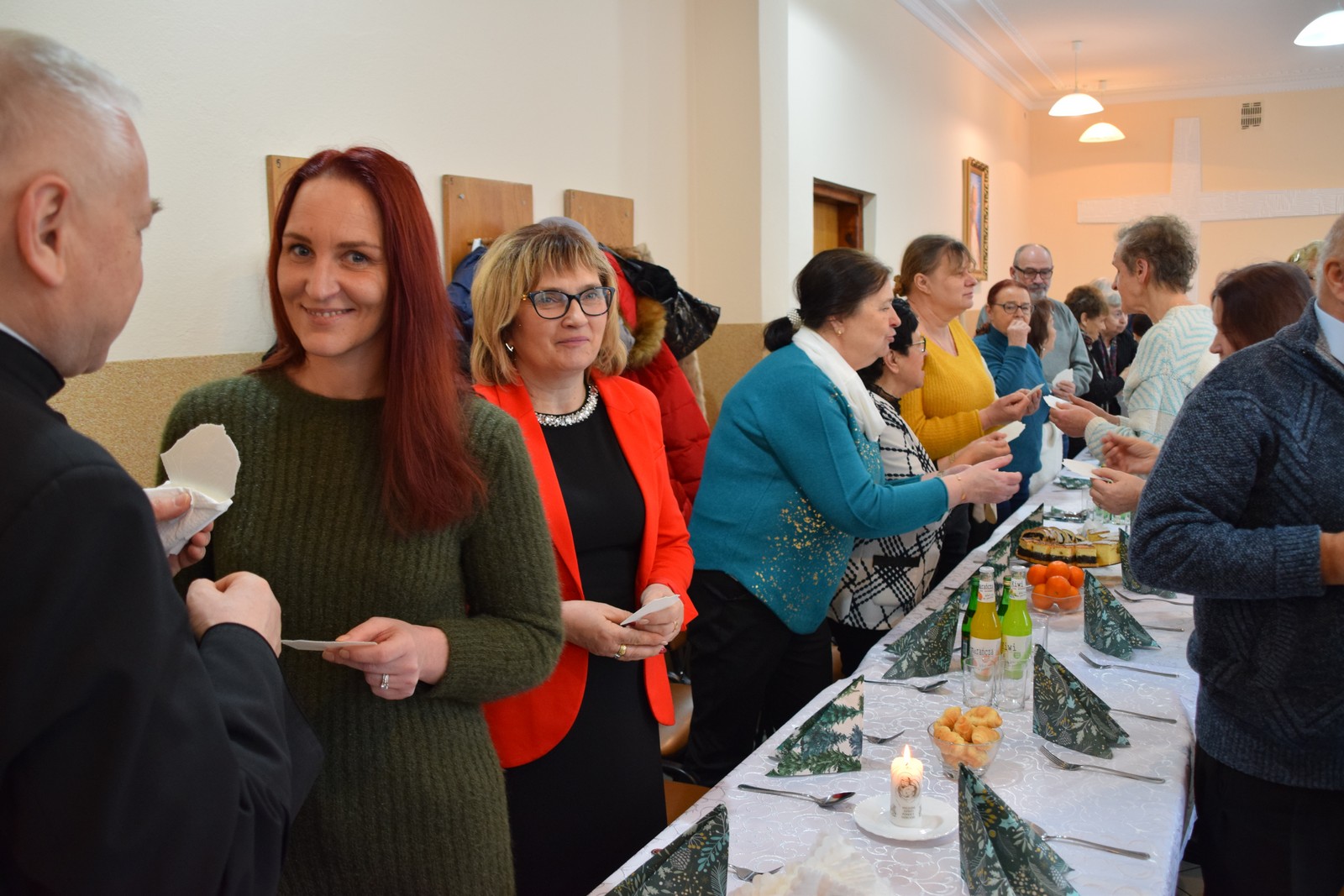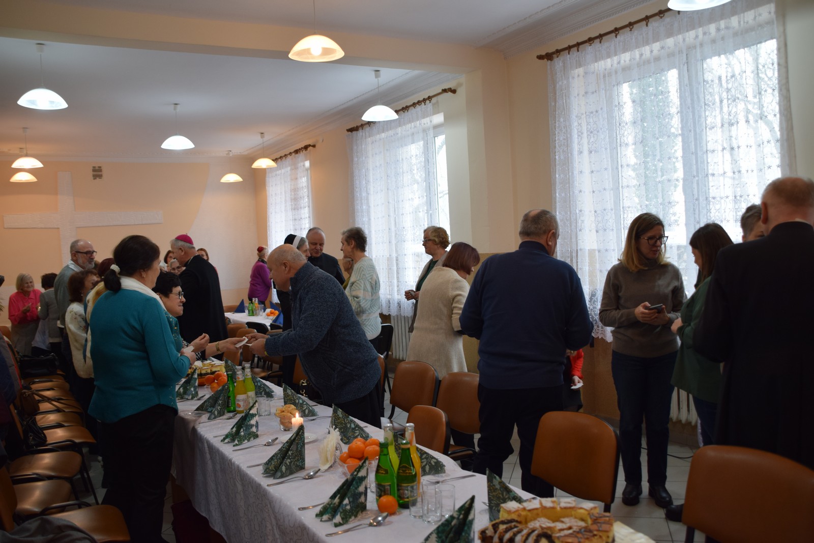 Druga część spotkania odbyła się w Centrum Integracji Społecznej Caritas. W ciepłej, świątecznej atmosferze wolontariusze podzielili się opłatkiem, składając sobie nawzajem życzenia pokoju, zdrowia i błogosławieństwa Bożej Opatrzności. Kolędowanie poprowadziła niezwykle uzdolniona muzycznie Karolina Latos – wolontariuszka Caritas;  śpiew kolęd i pastorałek był radosnym oddaniem czci narodzonemu Zbawicielowi. Spotkanie to wzmocniło więzi zespołów Caritas, przypominając o istocie miłosierdzia w duchu Bożego Narodzenia.