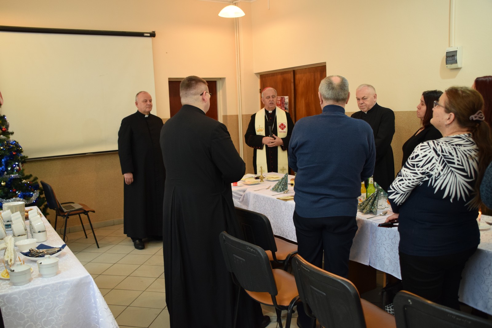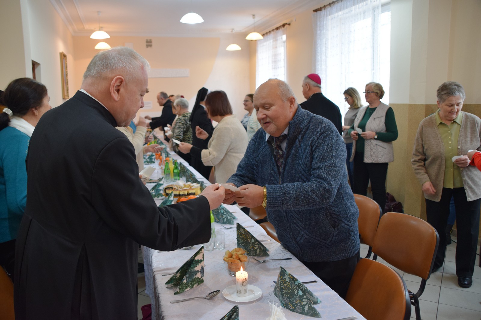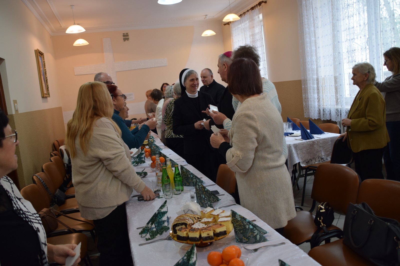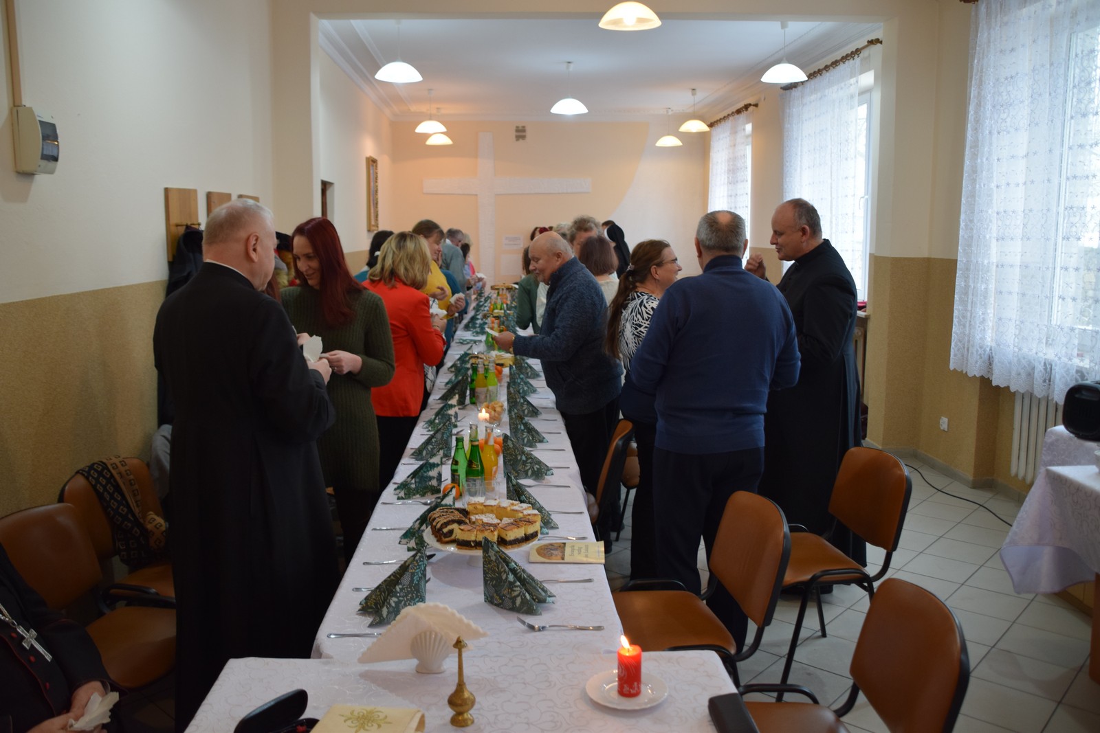 Druga część spotkania odbyła się w Centrum Integracji Społecznej Caritas. W ciepłej, świątecznej atmosferze wolontariusze podzielili się opłatkiem, składając sobie nawzajem życzenia pokoju, zdrowia i błogosławieństwa Bożej Opatrzności. Kolędowanie poprowadziła niezwykle uzdolniona muzycznie Karolina Latos – wolontariuszka Caritas;  śpiew kolęd i pastorałek był radosnym oddaniem czci narodzonemu Zbawicielowi. Spotkanie to wzmocniło więzi zespołów Caritas, przypominając o istocie miłosierdzia w duchu Bożego Narodzenia.