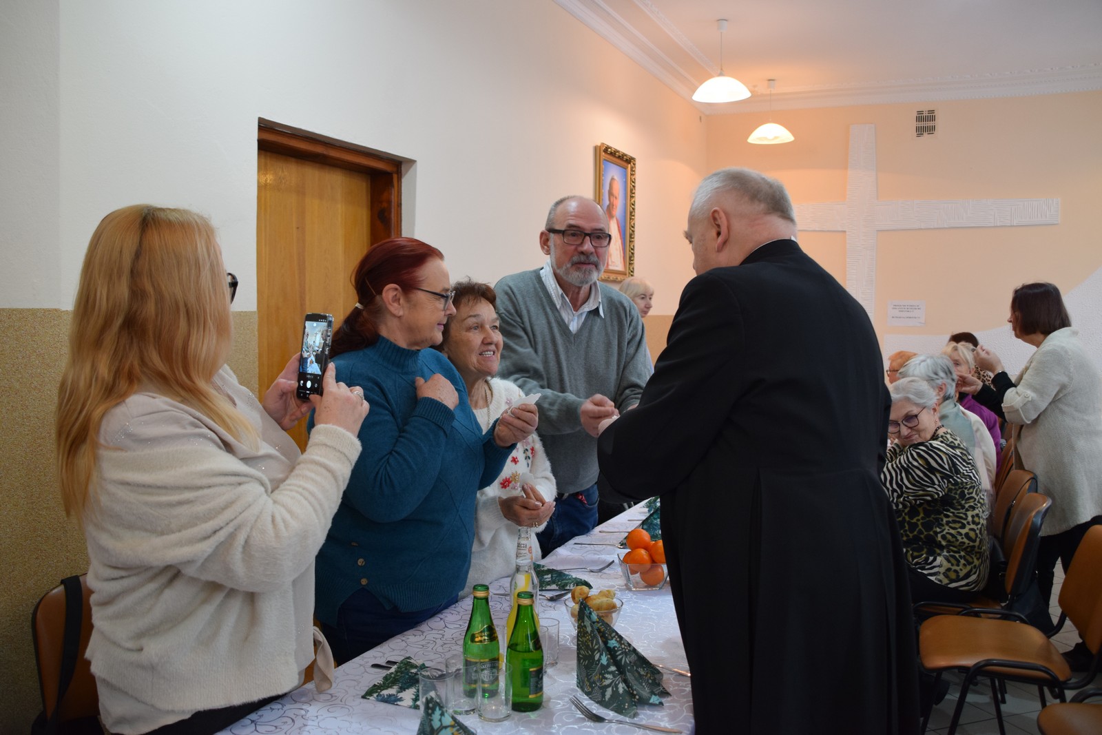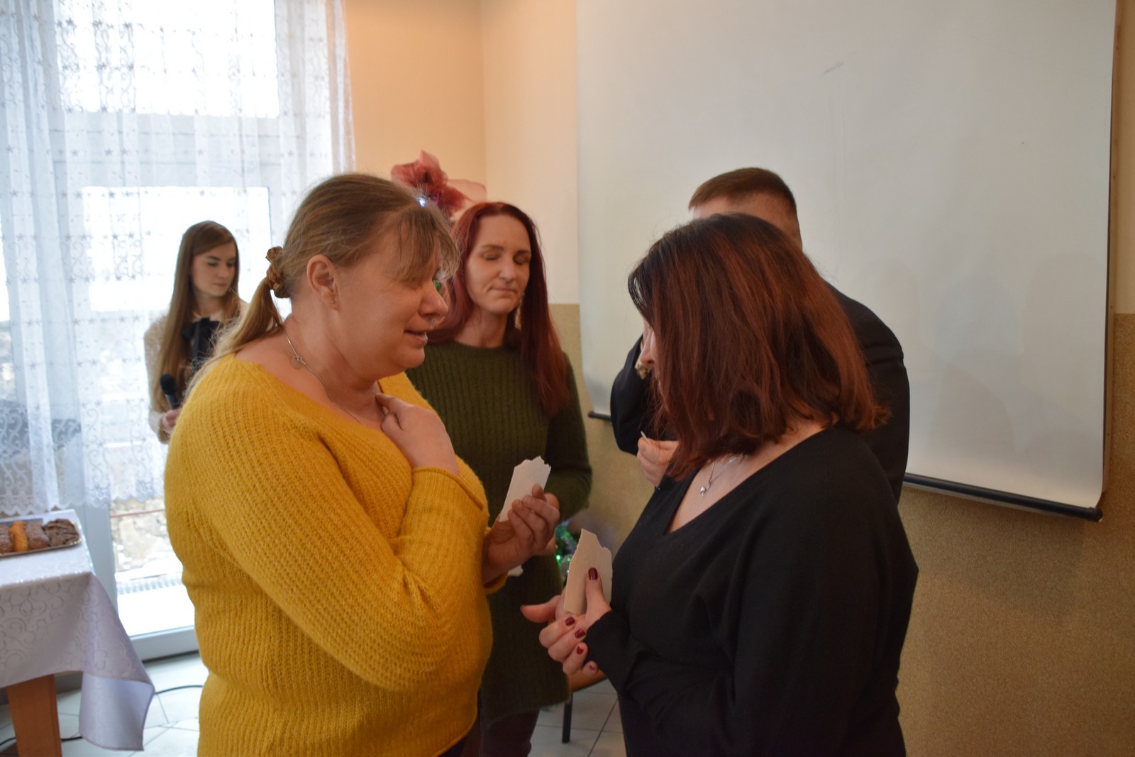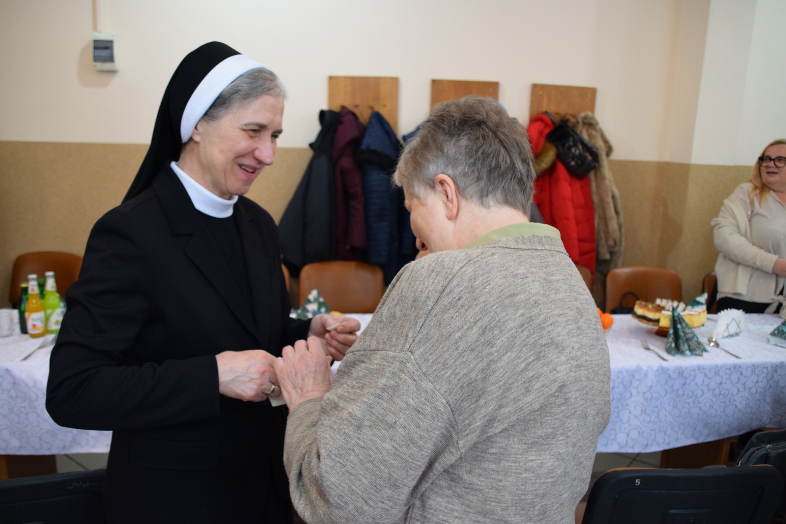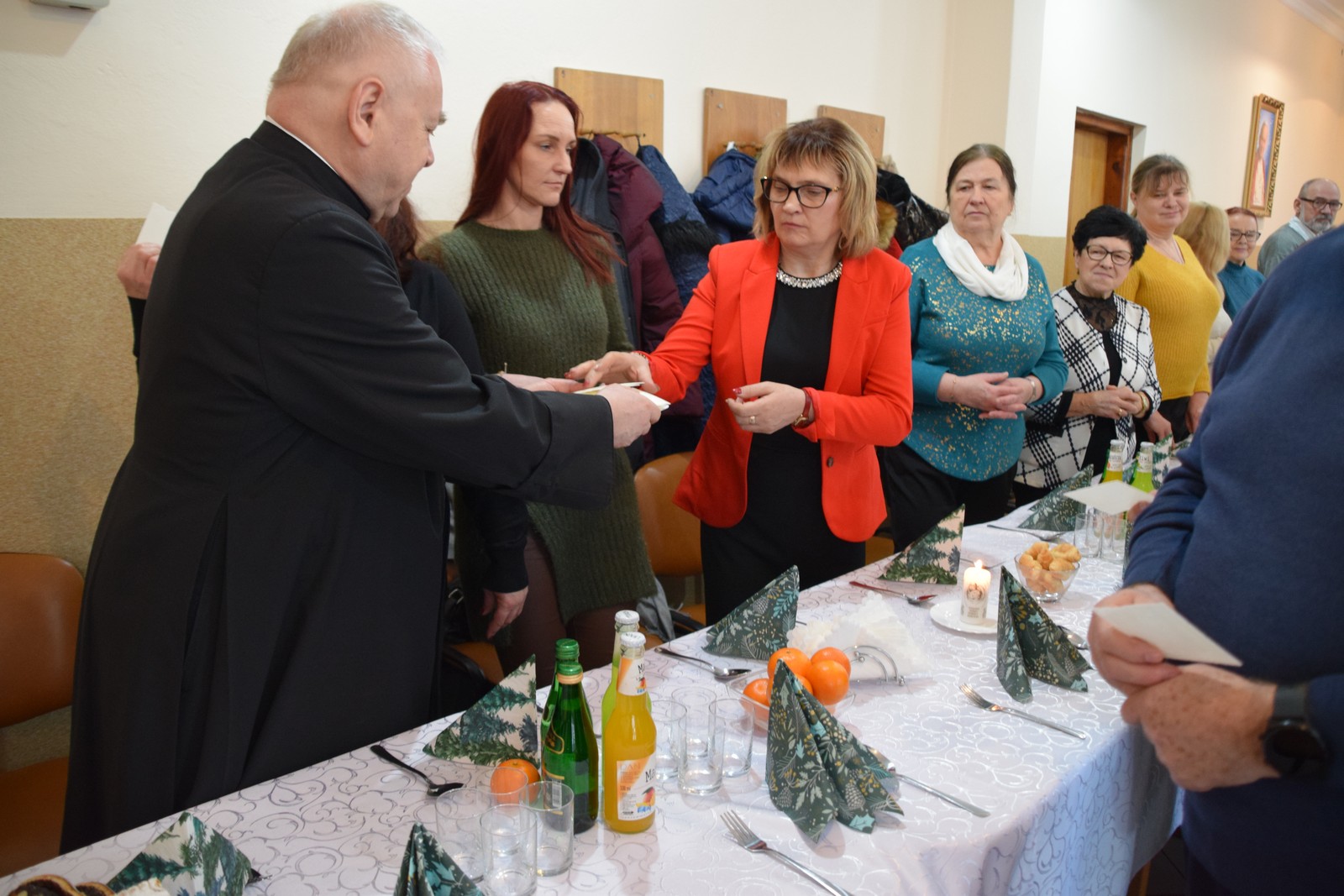 Druga część spotkania odbyła się w Centrum Integracji Społecznej Caritas. W ciepłej, świątecznej atmosferze wolontariusze podzielili się opłatkiem, składając sobie nawzajem życzenia pokoju, zdrowia i błogosławieństwa Bożej Opatrzności. Kolędowanie poprowadziła niezwykle uzdolniona muzycznie Karolina Latos – wolontariuszka Caritas;  śpiew kolęd i pastorałek był radosnym oddaniem czci narodzonemu Zbawicielowi. Spotkanie to wzmocniło więzi zespołów Caritas, przypominając o istocie miłosierdzia w duchu Bożego Narodzenia.