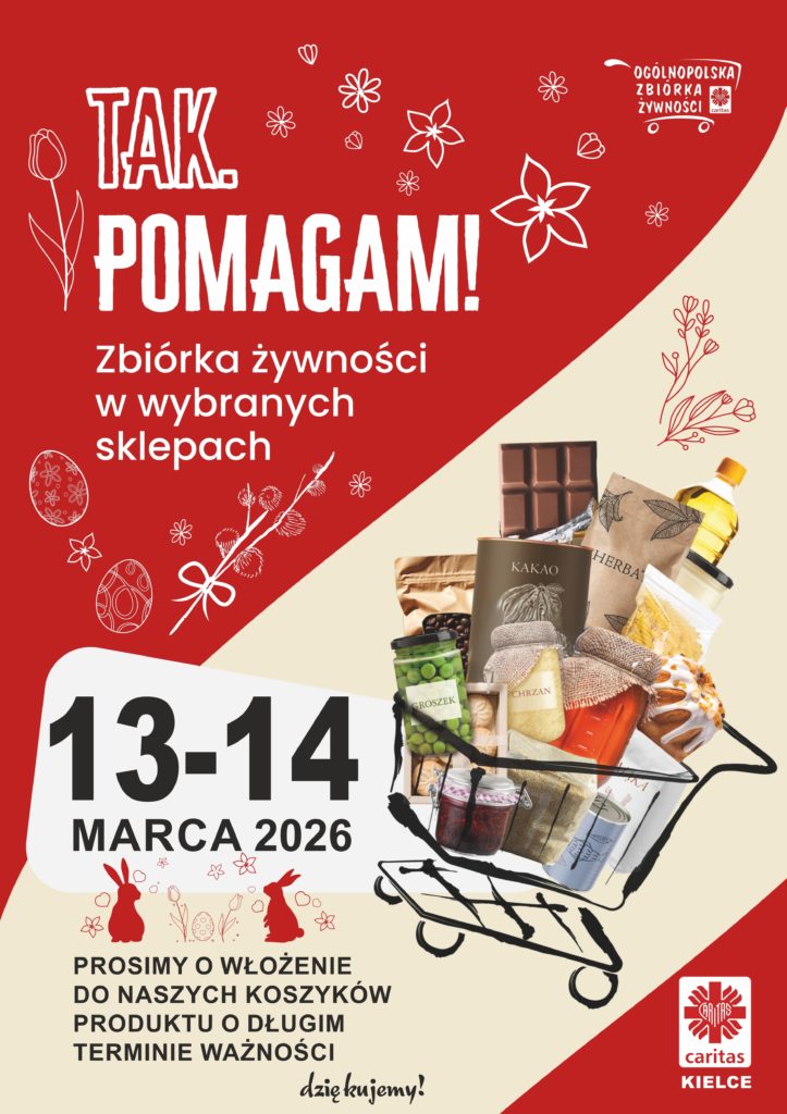 Caritas Diecezji Kieleckiej organizuje przedświąteczną zbiórkę żywności w dniach 13-14 marca 2026 roku (w piątek w godz. 14-20, a w sobotę w godz. 9-18).